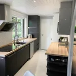 Der Innenraum ist mit einem Sofa und einem Schreibtisch sowie einem Flachbildfernseher mit Satellitenkanälen ausgestattet. Die 1-Zimmer- Rolig villa i midten af Danmark verfügt über ein Badezimmer mit einer getrennten Toilette und einer Dusche. Ein Haartrockner und Handtücher gehören ebenfalls zur Ausstattung des Badezimmers.